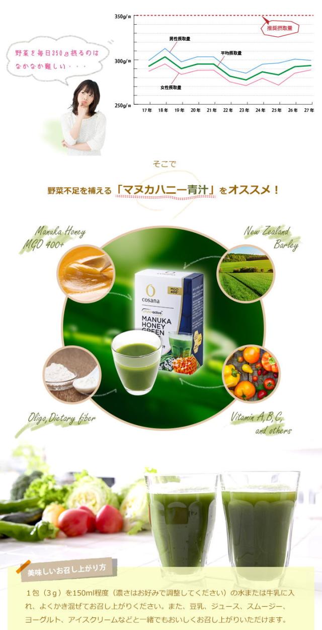 不溶性食物繊維 サプリ マヌカハニー青汁 30包×5個 送料無料 マヌカハニーMGO400+を大麦若葉青汁に ビタミン・ミネラル・アミノ酸などが豊富 コサナ