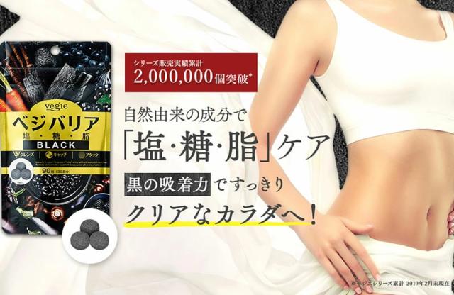 ベジエ ベジバリア塩糖脂ブラック 180粒 (メール便送料無料) vegie ダイエット 塩分 脂質 糖質 対策 サプリメント 炭 チャコール 活性炭 桑の葉 カリウム