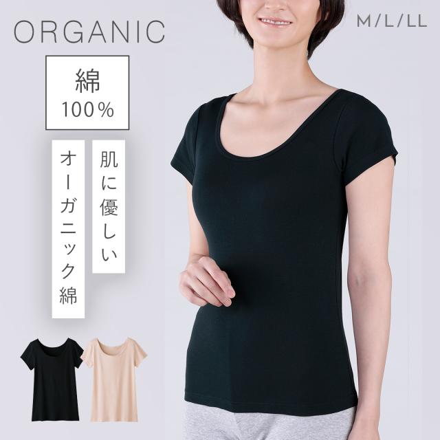 オーガニックコットン インナー,インナー フレンチ袖,フレンチスリーブ 綿100 インナー, シャツ,半袖,フレンチ袖,フレンチスリーブ,オーガニックコットン,ブラック,黒,ベージュ,インナー,肌着,綿100%,コットン100%,綿,コットン,100,敏感肌,乾燥肌,肌に優しい,ストレッチ,伸縮,伸びる,フィット,無地,シンプル,薄手,薄い,大人,レディース,女性,シニア,高齢者,お年寄り,ミセス,30代,40代,50代,60代,70代,M,L,LL,大きいサイズ,ゆったり,大きめ,