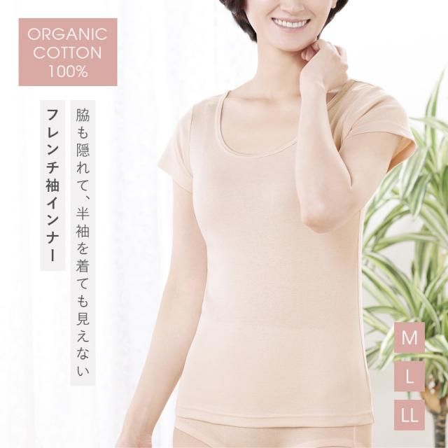 身生地にオーガニックコットンを100%使用したフレンチ袖インナー。