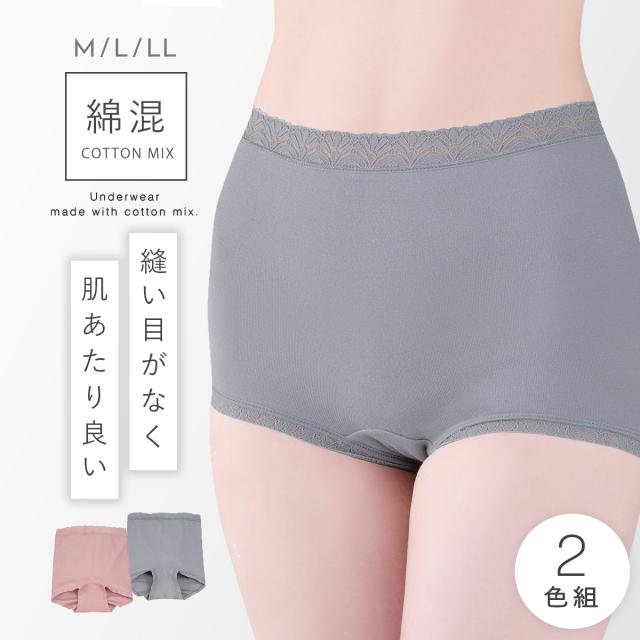 【2枚セット】 ショーツ レディース セット 2枚組 シームレス 縫い目がない 一分丈 ストレッチ 伸縮 締め付けない 響きにくい 深履き 深ばき 股上深め 深め おへそまで 肌着 下着 M L LL 大きいサイズ 大きめ ゆったり グレー ピンク 綿混 シンプル ベーシック 女性 婦...