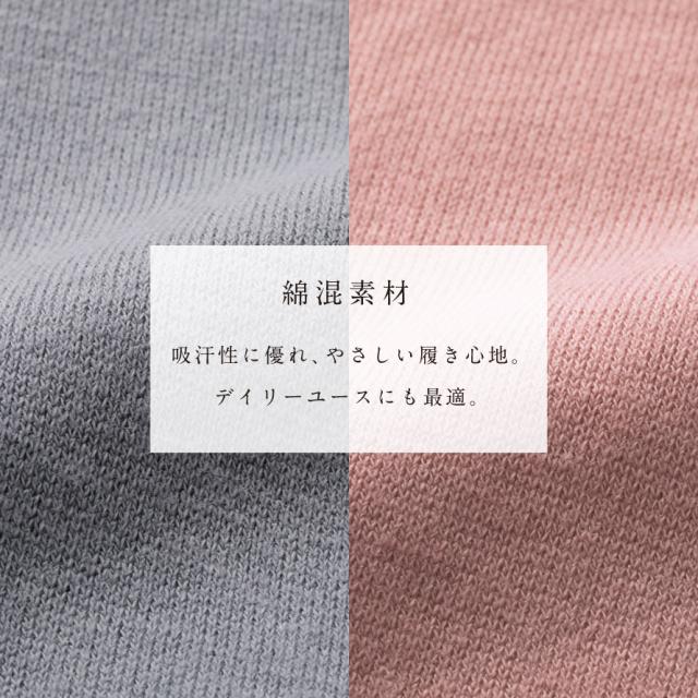 綿混素材で吸汗性に優れ、やさしい履き心地。
