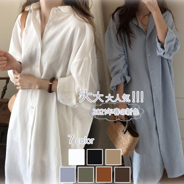 レディース ワンピース ロング丈シャツ コットンシャツワンピ シャツワンピース 大人気 2way シャツワンピ シャツワンピース ロング丈 マキシ丈 シャツ コットンワンピ