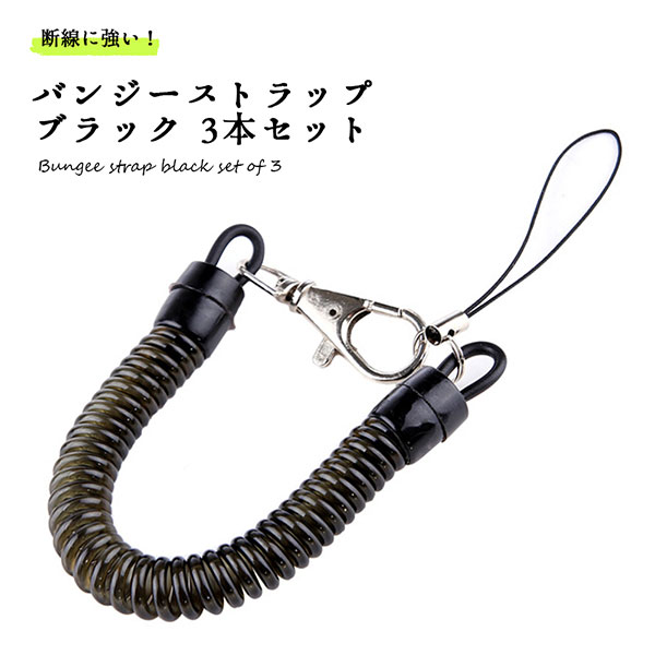 バンジーストラップ クリップ 落下防止 紛失防止 強力 カールコードストラップ ブラック 3本セット