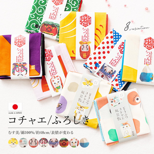 風呂敷 おしゃれ むす美 日本製 綿 バッグ 48cm 犬 猫 だるま 富士山 エコバッグ 和雑貨 コチャエ 軸原ヨウスケ 武田美貴 メール便
