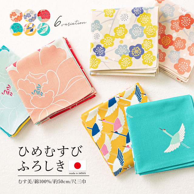 風呂敷 おしゃれ むす美 日本製 綿 50cm 尺三巾 梅 鶴 牡丹 お弁当 エコバッグ ひめむすび 和雑貨 オーガニックコットン メール便