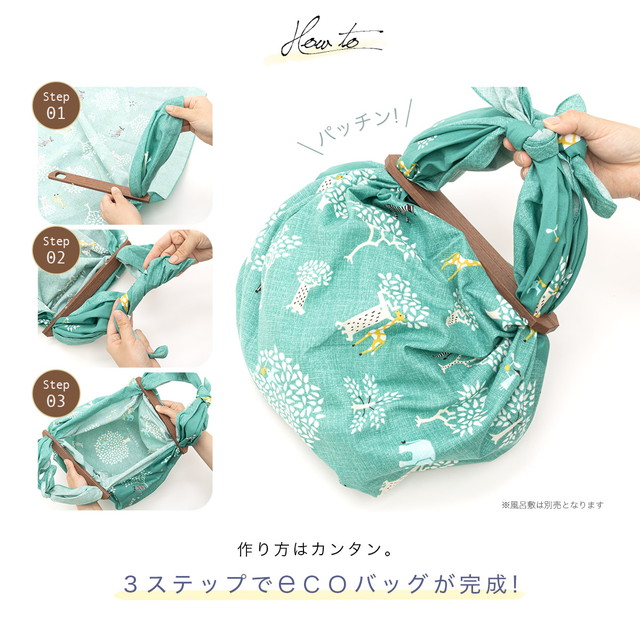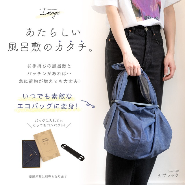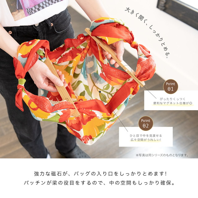 ふろしきパッチンは、70cm~110cmの風呂敷でバッグにすることができるアイテムです。