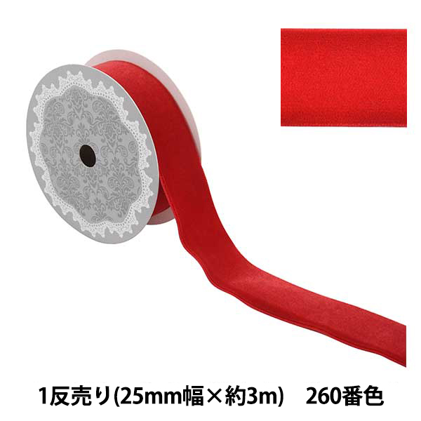 リボン 『ベルベットリボン 25mm幅×約3m巻 260番色 濃い赤』