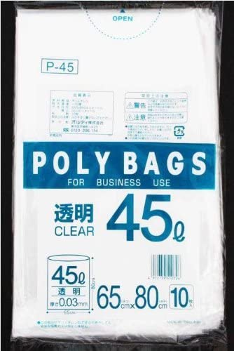 オルディ 業務用ポリ袋 ゴミ袋 ポリバッグビジネス45L 10枚入 透明 P-45 【北海道・沖縄・離島配送不可】