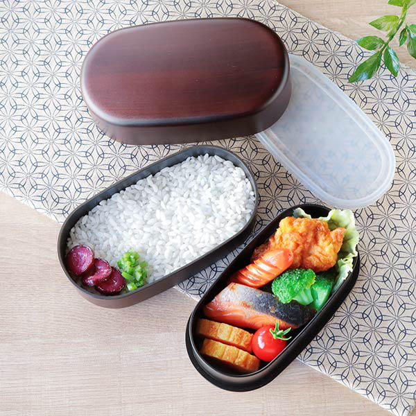 木のぬくもり溢れる木目調のジャンボ小判型2段弁当箱