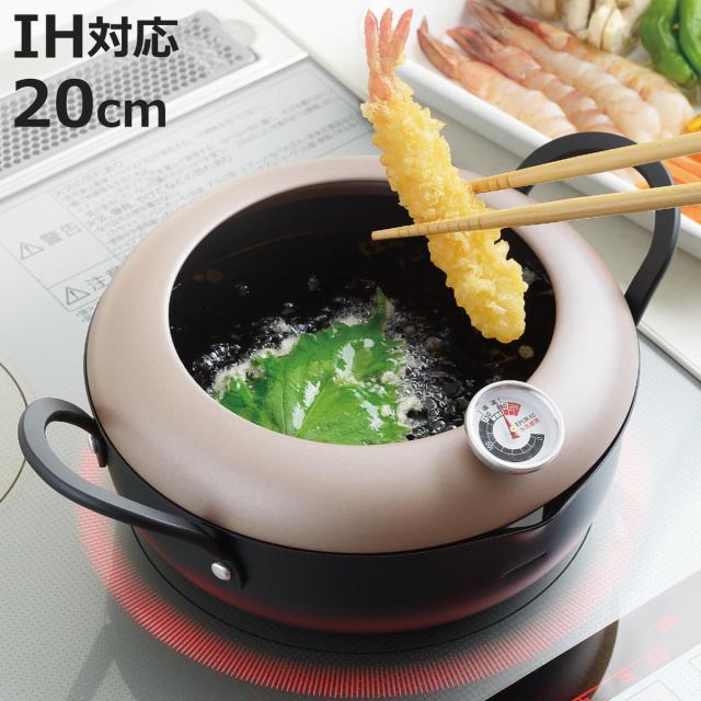 両手天ぷら鍋 20cm IH対応 鉄製 揚げ天 温度計付き 日本製 ( ガス火対応 ih対応 フライ鍋 フライヤー 揚げ鍋 揚げ物鍋 両手鍋 なべ 20センチ 鉄鍋 鉄製揚げ鍋鉄製 揚鍋 天婦羅鍋 ガード付き 油はね防止 油はねガード )