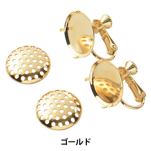 網の穴にワイヤーやテグスでビーズ・パールなどを編み込んで使用するイヤリング金具です。
