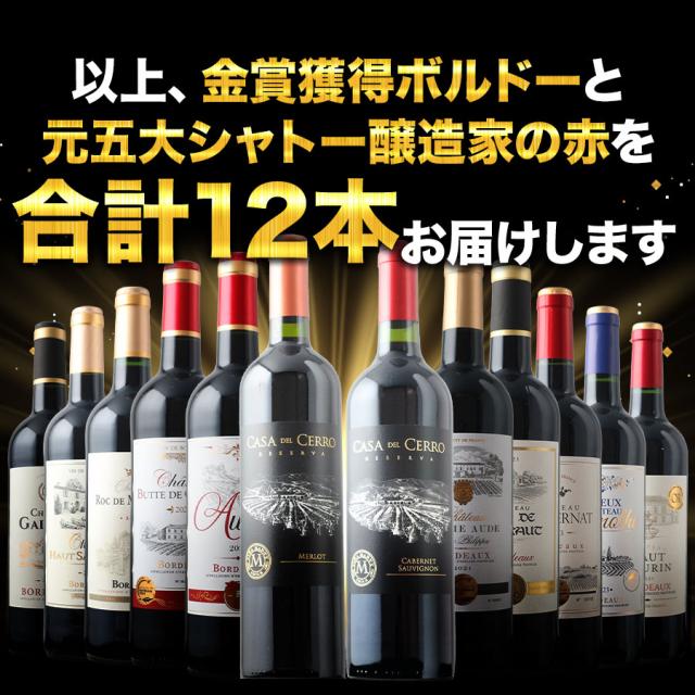 ワインセット 赤ワイン 送料無料 16周年記念!金賞ボルドーと元五大シャトー醸造家の赤ワイン12本セット