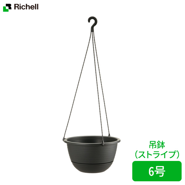 リッチェル 植木鉢 ハンギングボール ストライプ 6号 ダークグレー(DG) | 鉢 ポット プランター 吊り鉢 丸型 つるす ガーデニング 吊鉢 吊り下げ プラスチック 園芸鉢 6号