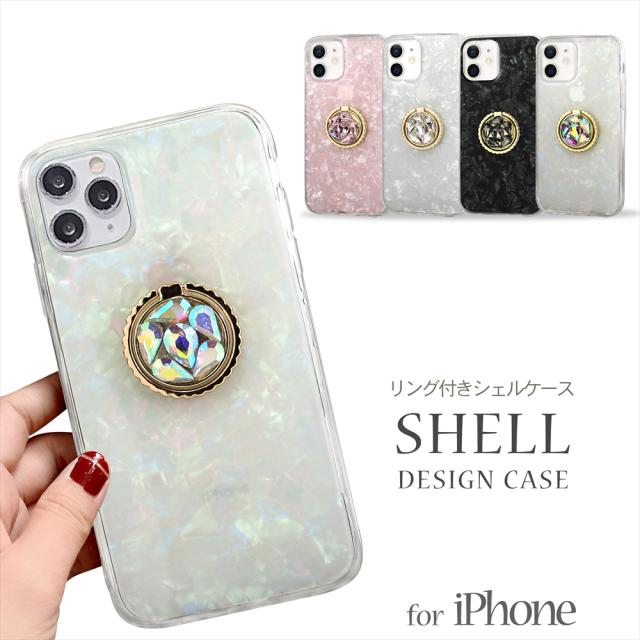 iPhone12 ケース シェル デザイン 貝殻 ミルキー TPU 12Pro 12ProMax 12mini iPhone11 Pro Max スマホケース 背面 バンカーリング スマホリング リング付き キラキラ パール調 オーロラ 真珠層 光沢 ソフトケース やわらか
