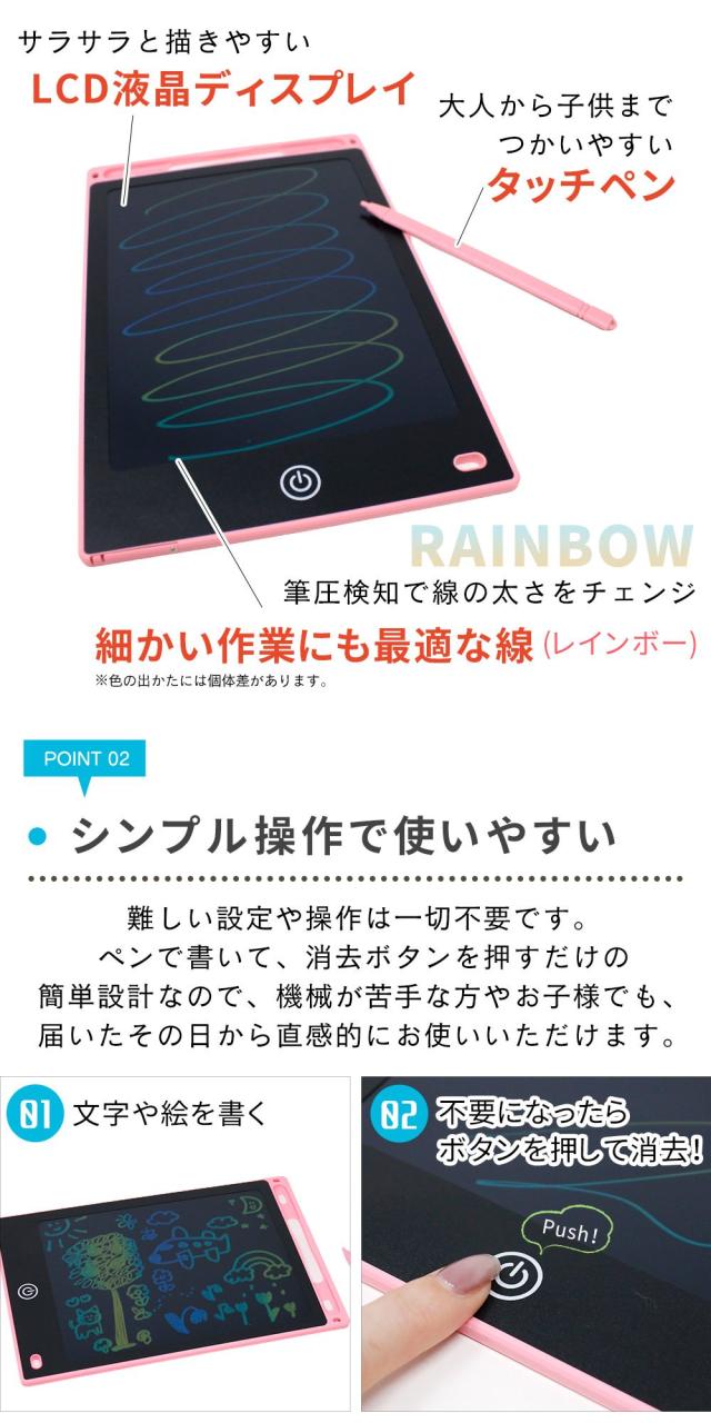 - 8.5インチの薄型軽量メモパッド! 専用ペン付き、ワンボタンタッチの簡単消去! メッセージボードとしてもgood!