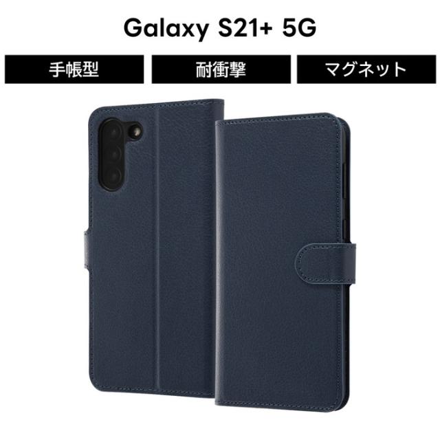 Galaxy S21 5G 耐衝撃 手帳型ケース シンプル マグネット ダークネイビー カード収納