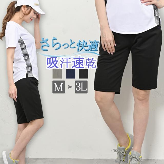 ジャージ レディース 下 パンツ スポーツ ヨガパンツ ヨガウェア ジャージ下 ジャージパンツ ハーフパンツ ショートパンツ ズボン 短パン 半ズボン 春 夏 秋 ウエストゴム 薄手 ひざ丈 涼しい 吸汗速乾 ハーフ ストレッチ 無地 黒 M L LL 3L 大きいサイズ 春夏 ハーフ丈