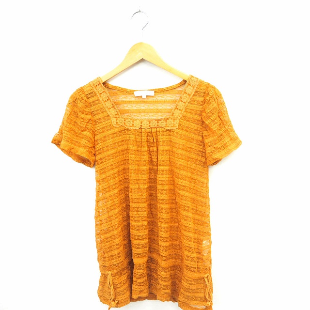 【中古】グローブ grove シャツ ブラウス レース スクエアネック 半袖 コットン 綿 M キャメル /MT39 レディース