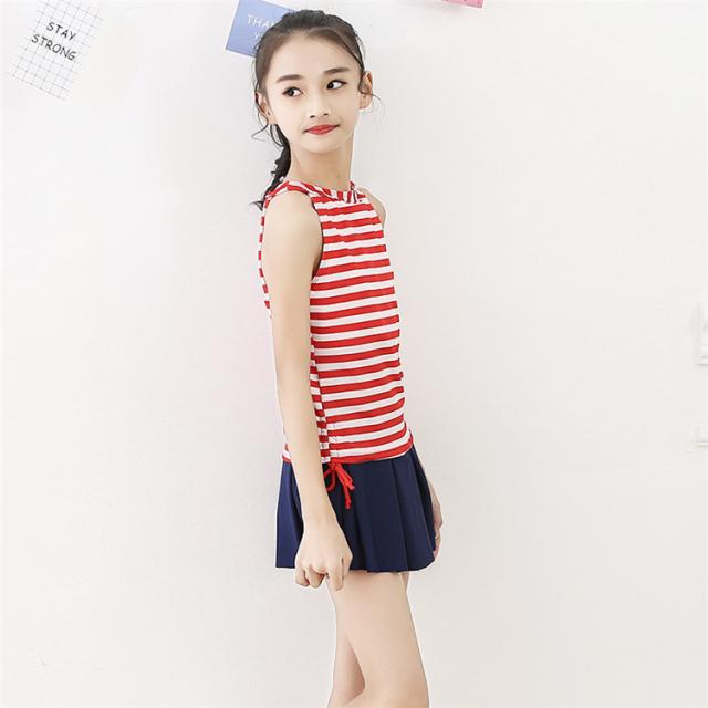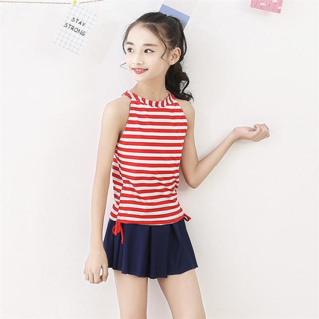 子供 水着 ボーダー 上下セット セパレートタイプ 2点セット 見せパン付き キッズ スイミング スクール水着 2色