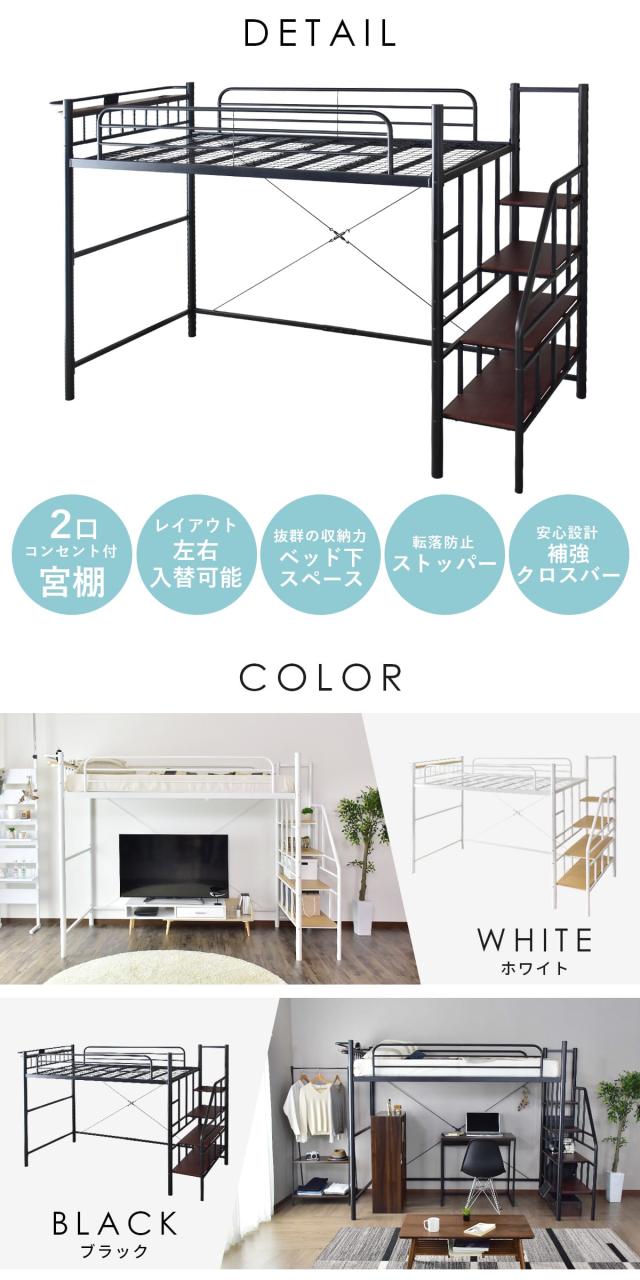 ロフトベッド パイプベッド シングル 耐荷重90kg ベッド 収納 トレップ インテリア家具 おすすめ おしゃれ 北欧 big_ki プレゼント tm