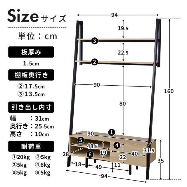 幅94×奥行31.5×高さ160×天板高35(cm)