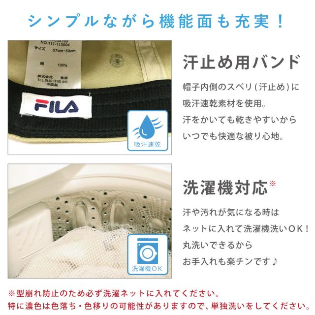 FILA ワークキャップ 綿 サイズがえらべる 無地 オーガニック コットン 57-59cm 59-61cm fi-117-113004 メール便は送料無料 正規取扱 フィラ 帽子 メンズ 作業帽 レディース 春夏 UVケア 男女兼用 おしゃれ 洗える帽子 吸汗速乾 アウトドア サイズ調節 普段使い