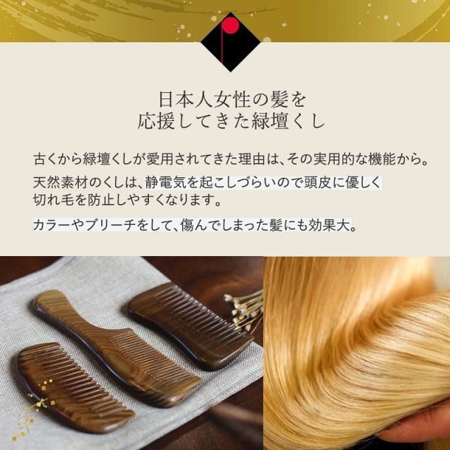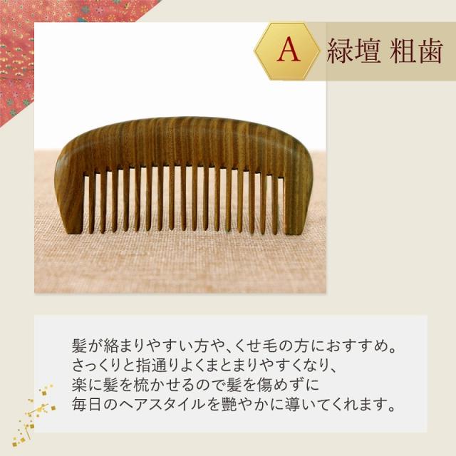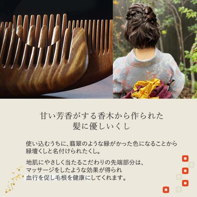 緑壇櫛 グリーンサンダルウッド コーム 緑檀 りょくだん ギフト 静電気防止 切れ毛 抜け毛 頭皮マッサージ 血行促進 ヘアケア 女性用 男性用 agesugi_sbe