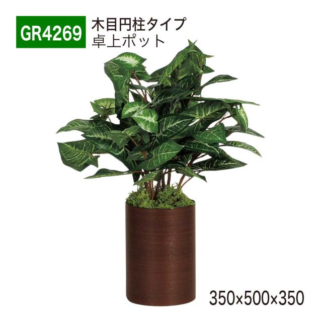 卓上ポット フェイクグリーン 350×500×350 木目 円柱タイプ 卓上パーテーション 立体ポット 【正規代理店】 ベルク 人工観葉植物 人工植物 造花 卓上グリーン オフィス クリニック 店舗 棚 什器 受付 デスク インテリア 国産 屋内用 BELK GreenMode GR4269