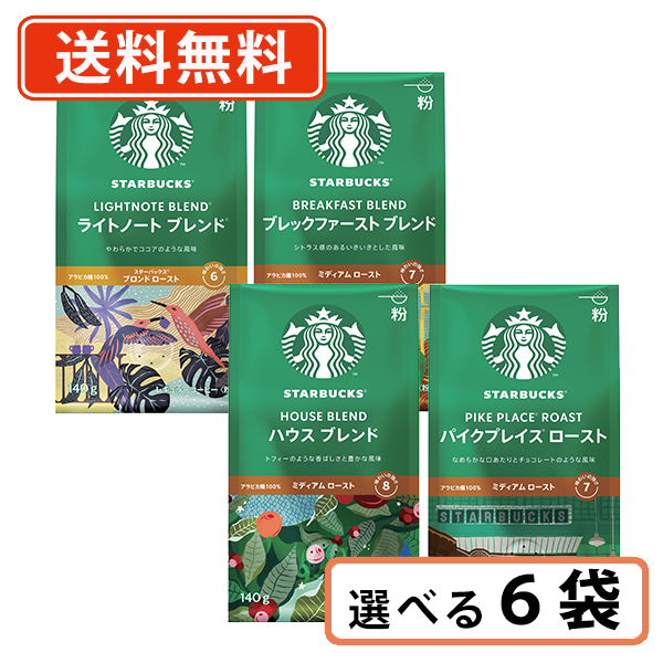 スターバックス レギュラーコーヒー 選べる6袋セット 140g 粉 ネスレ スタバ ハウスブレンド 送料無料(一部地域を除く)