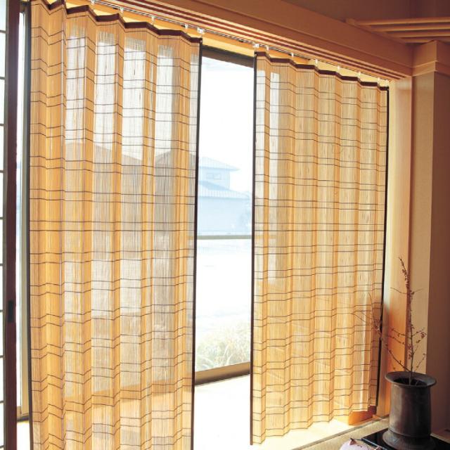 竹ヒゴを1本ずつ丁寧に磨き、横糸でつなぎ合わせた竹製のアコーディオンカーテンです。自然風を通し見た目にも涼しい。強い日差しを穏やかに遮ります。カーテンレールに掛けるだけの簡単取付。