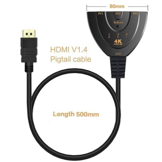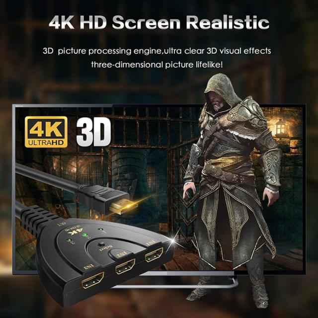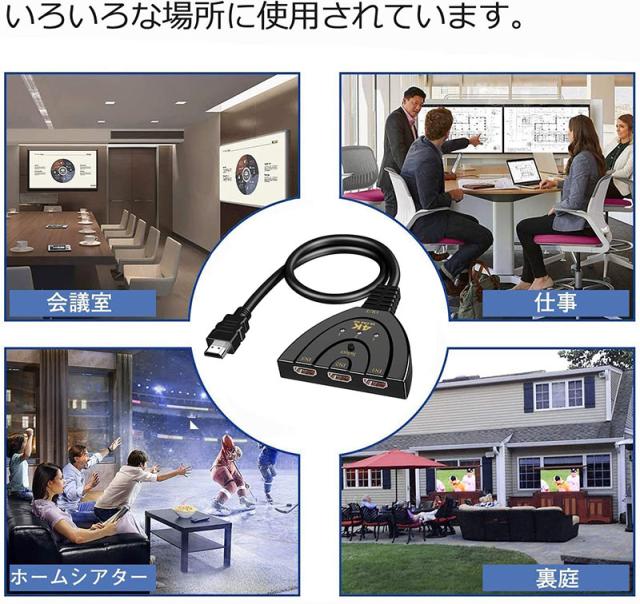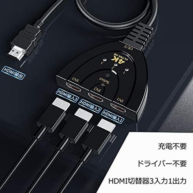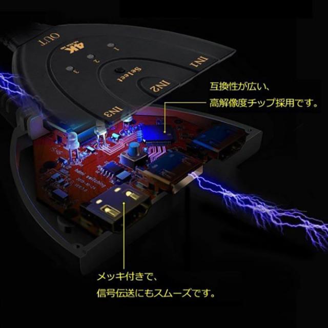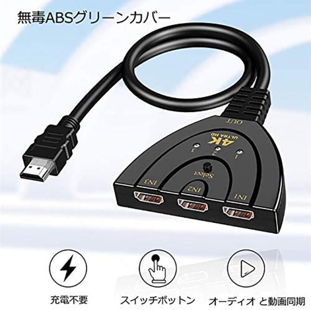 HDMI切替器 hdmi 切替器 3入力1出力 4K 分配器 セレクター パソコン PS3 Xbox 3D 1080p 3D対応 電源不要 Chromecast Stick Xbox One ゲーム機 レコーダー テレビ