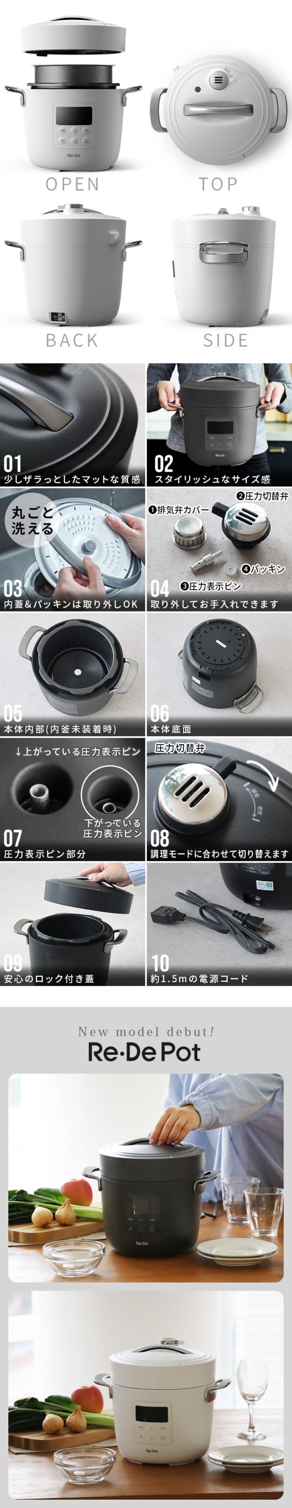 25年モデル 【選べる3大特典付】 電気圧力鍋 圧力鍋 電気 時短 2L 炊飯器 レシピ付き Re・De Pot リデポット 2L EPC01A-20 炊飯ジャー 4合 白米 玄米 保温 ほったらかし 低温調理 温め 予約 タイマー機能 無水調理 簡単調理 おしゃれ ギフト 送料無料 P10倍