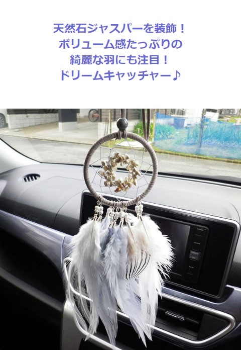 ドリームキャッチャー 丸 グレー ジャスパー パワーストーン 天然石 アクセサリー ルームミラー 飾り カー用品 あすつく 送料無料