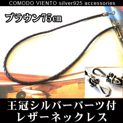 高級 本牛革 採用【ダークブラウン 75cm】王冠 シルバーパーツ付 レザーネックレスネックレス レザー 本革 本皮革 牛革 チェ・・・ 送料無料