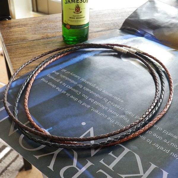 1cm単位で選べる 本革 3色 高級本牛皮マグネット式 4つ編込み ネックレス 3,3mm【3色】 レザー 本革 本皮革 牛革 本皮 マグネット チェーン ペンダントチェーン 皮ひも 革紐 メンズ レディース アクセサリー チョーカー 1000円ポッキリ より