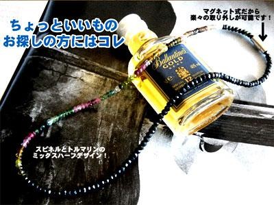 ブラックスピネル&トルマリンハーフネックレスチェーン【マグネット装着タイプ】ブラックダイヤ スピネル ブラックスピネル ネックレス・・・ 送料無料