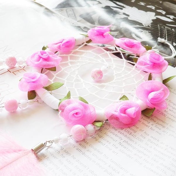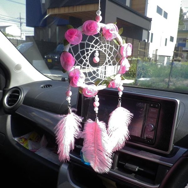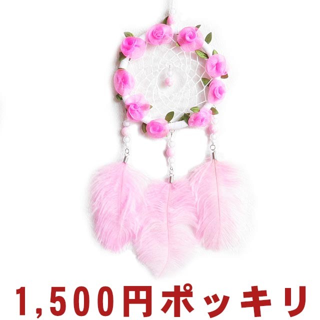 1500円ポッキリ ドリームキャッチャー ピンク 白 花 丸 円 雑貨 お守り 車 アクセサリー ルームミラー あすつく 送料無料