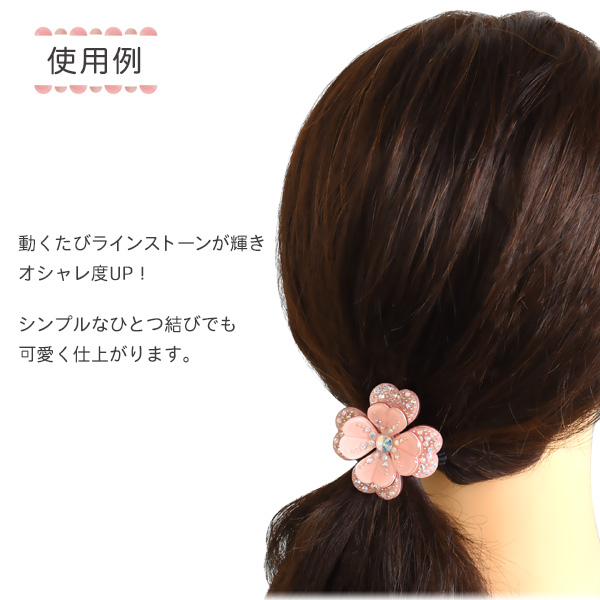 ヘアアクセサリー ヘアゴム きらきらフラワー 全3色 立体的 お花モチーフ ラインストーン付き 簡単 シンプル 上品 結ぶだけ 一つ結び かわいい 華やか まとめ髪 髪飾り レディース 女性 女子 かわいい オケージョン 式典 入園 入学式 卒園 卒業 参観日 普段使い