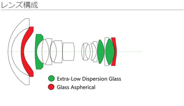●レンズ構成 11群17枚(非球面レンズ2枚、EDレンズ3枚)