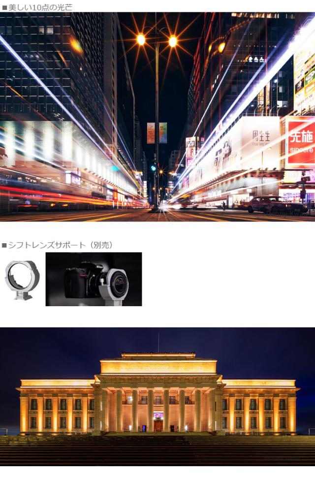 ●シフト機能 フルサイズ:±11mmシフト、ミディアムフォーマット:±8mmシフト、最大イメージサークル:Φ65mm
