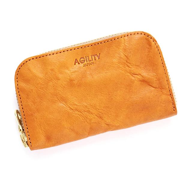 知っている人には懐かしい、80年代に流行したコインキャッチャーの金具を搭載した、ミニ財布です。ファスナーを開けると片側がオープンになっており、大きく開き取り出しやすくなっています。コインキャッチャーには、500円玉、100円玉、50円玉、10円玉を分けて収納ができ硬貨がそれぞれ何枚入っているか一目で見渡せるので、スタイリッシュかつとても便利です。入れるときは上から滑り込ませるように硬貨をさしこみ、出すときは上端でとまるようになっているので引き抜くように取り出します。コインキャッチャーの後ろのポケットにはカードがまとめて入ります。ファスナーポケットには小銭が入り、おつりをもらったときの仮置き場にしたり、レールに入らない少額硬貨の収納に便利です。ファスナーポケットの後ろのスペースには紙幣が三つ折りか四つ折りで入ります。メイドインジャパンの最高級ベジタブルタンニンレザー「栃木レザー」をベースに、東京の染革工場にオーダーしさらに手間をかけてソフトに仕上げたAGILITYオリジナルの革です。染料やオイルを塗りこんでから軽く水につけ、大きなドラムに入れて回すことで、絞ったような凹凸感のある独特な表情に仕上げています。表面は染料のみで仕上げているため、使っていくと特に摩擦の多い凸部分から艶があがっていき、色も濃くなっていく経年変化を愉しめます。栃木レザーは、厚みのある北米原皮を原料に、ミモザやチェストナットなどの植物から抽出したタンニン(渋)の溶液の入った槽に、1〜2か月じっくりと浸透させる「ピット鞣し」とよばれる世界でも希少な製法で鞣した牛革です。あえて時間をかけることで革に負担をかけずに自然に鞣され、肌目も細かく芯までタンニンの成分が浸透するため、美しく堅牢な革に仕上がっています。【アフターケア】柔らかい布などで乾拭きする程度で美しい状態を保てます。クリームやオイルの過度な塗布は革の表情を損ねる原因となるのでご注意ください。