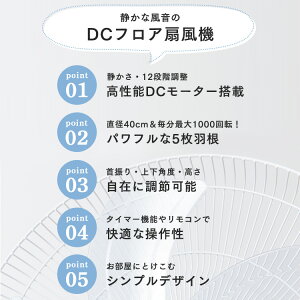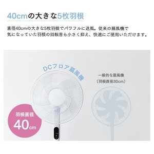 扇風機 DCフロア扇風機 ホワイト PF-402FD-W リビングファン フロア扇 首振り 首ふり DCモーター DC リモコン付き リモコン タイマー機能 タイマー 入タイマー 切タイマー 高さ調節 リビング 送料無料