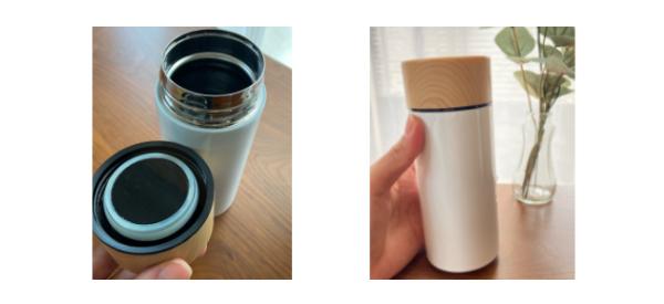 夏が近づき、保冷効果のある水筒が欲しいと思い、こちらの300mlのホワイトを購入しました。なんといってもこの見た目がとってもかわいいです。木目のキャップにホワイトの本体なので、シンプルでおしゃれな、これ一つで女子力が上がった気分になります。