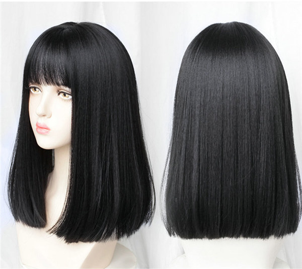 黒髪 セミロング フルウィッグ ウィッグ ウィッグ 日常 普段使い コスプレウィッグ ハロウィン 耐熱ウィッグ コスチューム 小顔効果抜群 可愛い 仮装 大人用 ブラック ストレート コスプレ パーティー イベント 仮装 女装 ロリータ風 lolita 原宿風 かつら 前髪 つけ毛 レディース 人気 韓国風 dp089g4g4s3