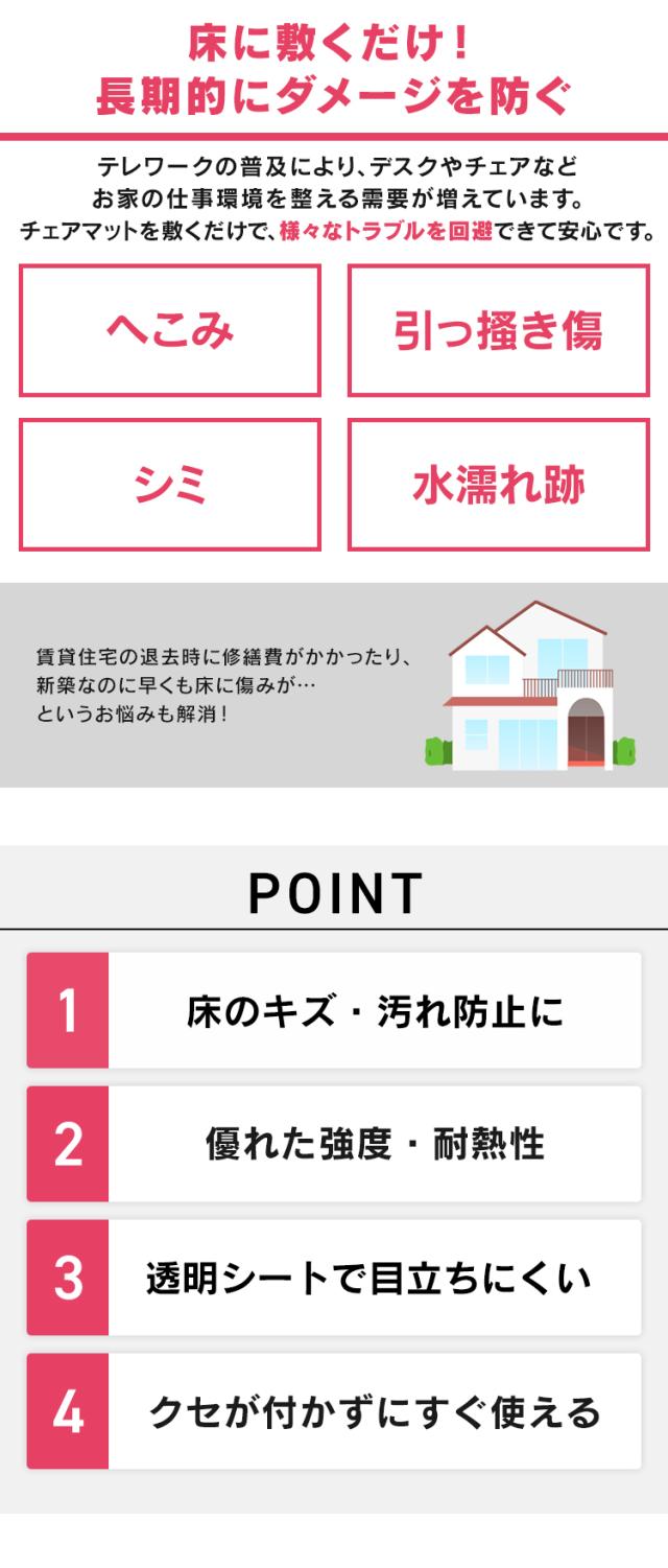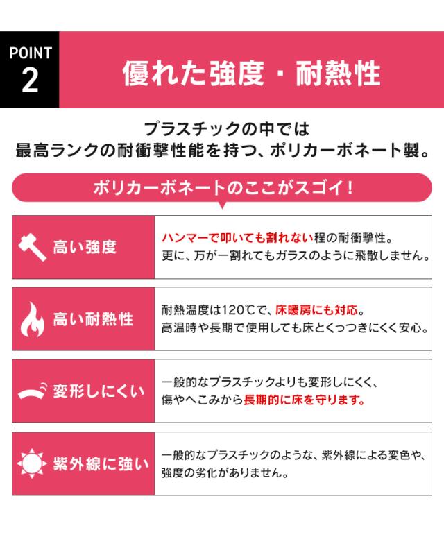 チェアマットを敷くだけで、キャスターによるキズや様々な汚れを防げます。