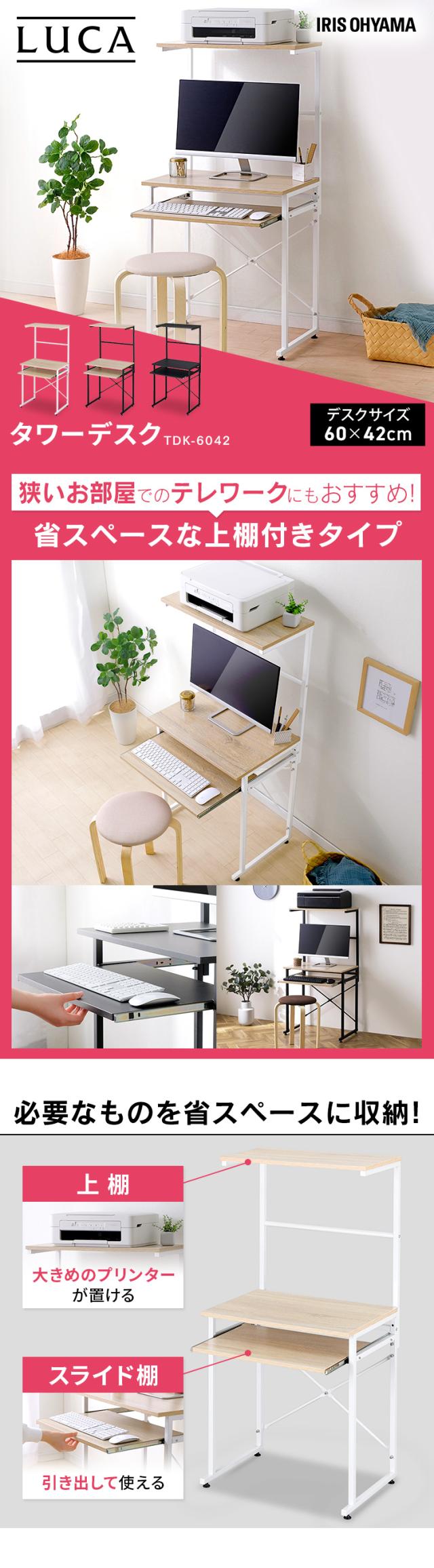 タワーデスク TDK-6042 全3色 パソコンデスク ハイタイプ コンパクト 60cm幅 デスク PCデスク ワークデスク 机 作業台 省スペース シンプル オフィス テレワーク 棚付き プリンタ パソコンラック アイリスオーヤマ 送料無料 【int】