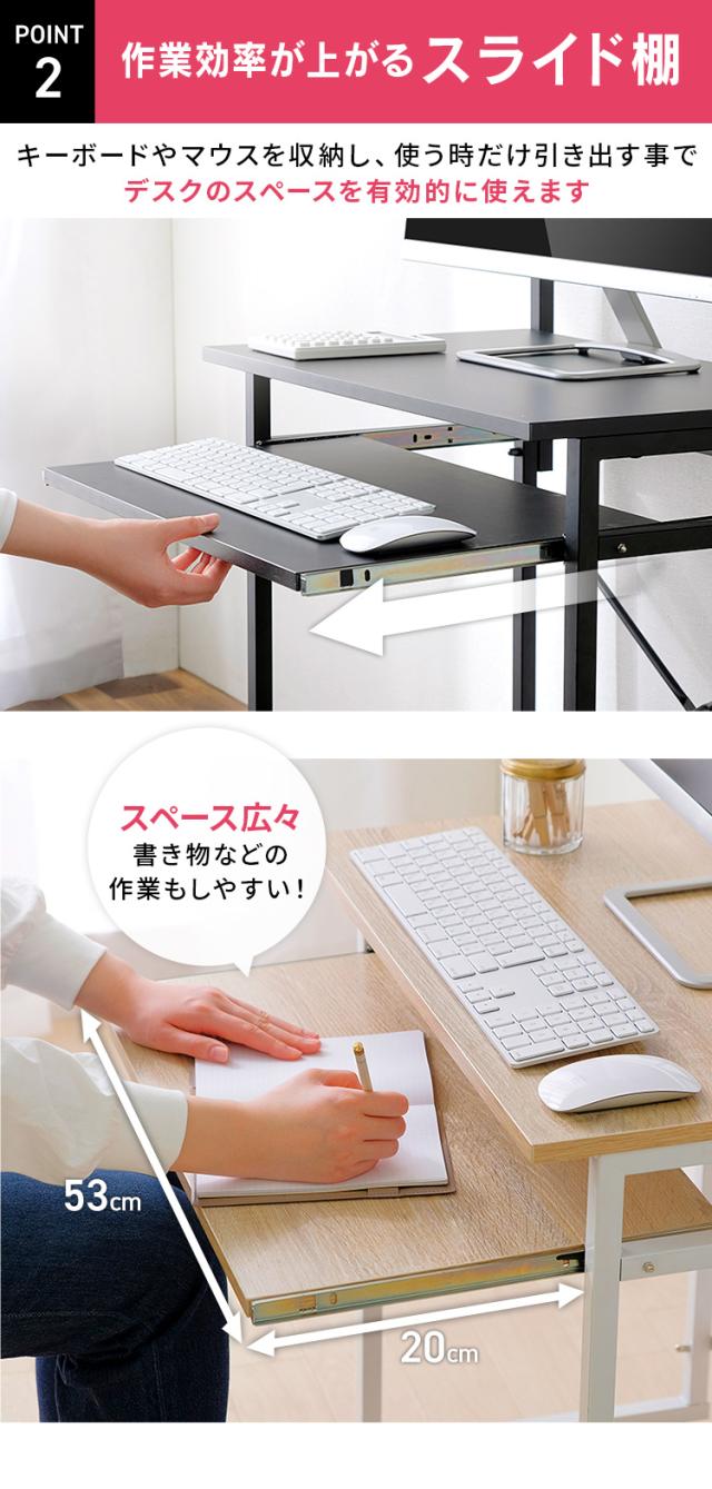 上部にはプリンタなどを置ける棚付き。狭いスペースでもすっきり収まります。