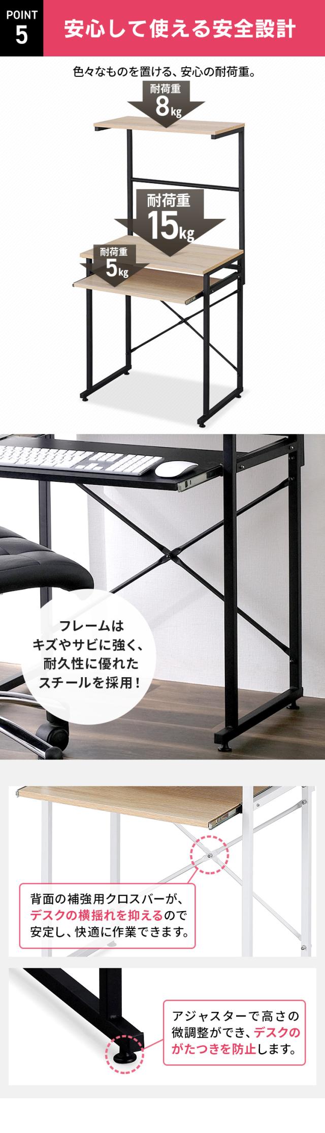 天板:約15kg、上部棚板:8kg、スライド棚板:約5kg