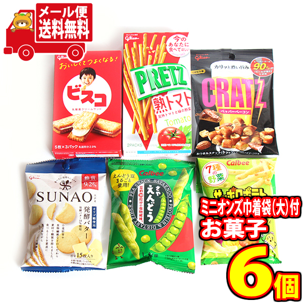 (メール便で全国送料無料) グリコとカルビーのポリポリスナック菓子プチセット ミニオン巾着付き(大)おかしのマーチ (omtmb7113)